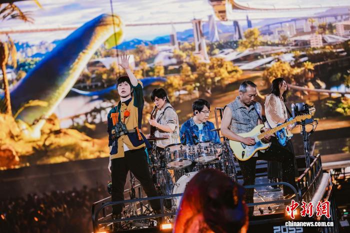 图为蒲月天正在台上取歌迷互动。钟欣 摄